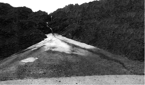 चित्र 7.4 अमरनाथ, जम्मू तथा कश्मीर के मार्ग में एक पहाड़ ी सरिता द्वारा निक्षेपित जलोढ़़़ पंख