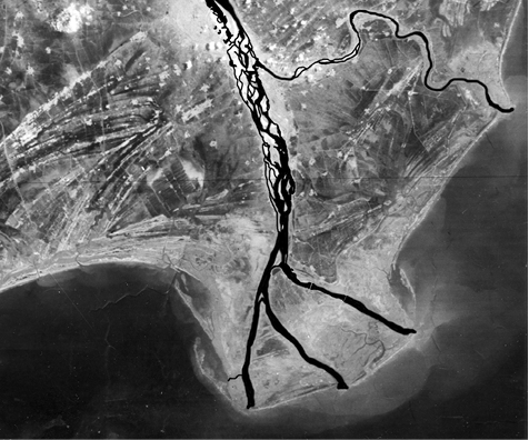 चित्र 7.14 उपग्रहीय चित्र-गोदावरी नदी डेल्टा का स्पिट