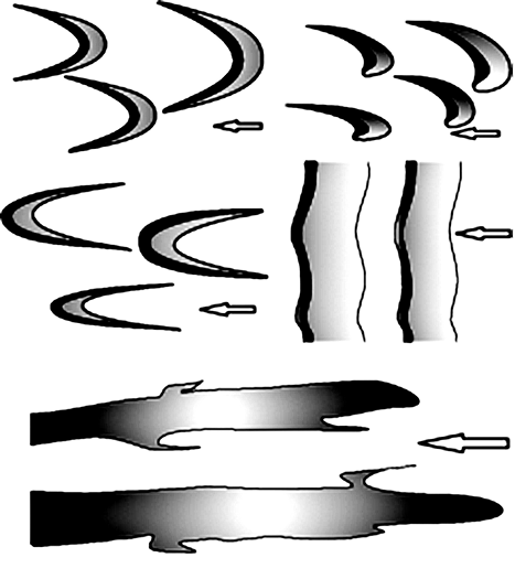 चित्र 7.8 विसर्प वृद्धि एवं छाड़ न लूप तथा स्कंध ढाल एवं अधोरदित तट