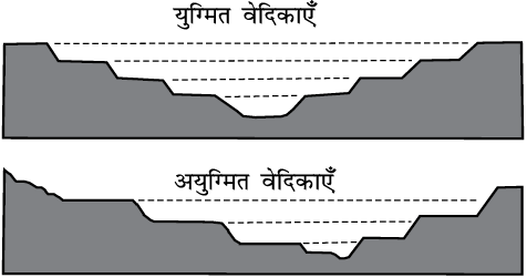 चित्र 7.3 ः युग्मित एवं अयुग्मित वेदिकाएँ