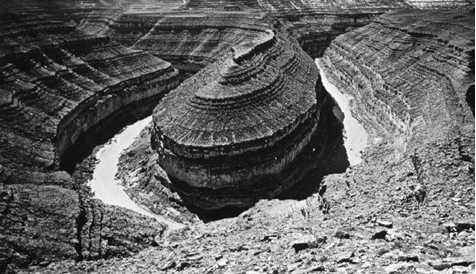 चित्र 7.2 संयुक्त राज्य अमेरिका में कोलोरेडो का गभीरीभूत विसर्प लूप, जो इसकी घाटी के कैनियन जैसे सोपान सदृश्य पार्श्वीय ढाल दर्शाता है।