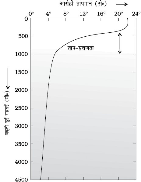 चित्र 13.3 : ताप प्रवणता (थर्मोक्लाईन)