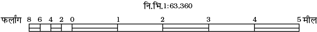 एेसा करके आप 6.3 इंच की असमान रेखा को 5 बराबर भागों में बाँट लेंगें। पुनः बायें भाग को फर्लांगों में व्यक्त करने के लिए 4 या 8 भागों में विभाजित कीजिए।