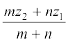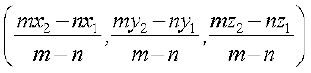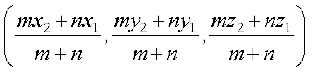 दो बिंदुओं P (x1 y1 z1) तथा Q (x2, y2, z2) को मिलाने वाले रेखा खंड को m : n अनुपात में अंत: और बाह्य: विभाजित करने वाले बिंदु R के निर्देशांक क्रमश:
