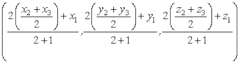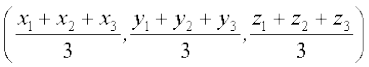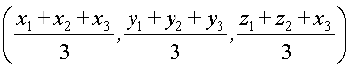 एक त्रिभुज जिसके शीर्षों के निर्देशांक (x1, y1, z1), (x2, y2, z2) और (x3, y3, z3) हैं, के केंद्रक के निर्देशांक है: