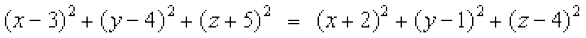 (x – 3)2 + (y – 4)2 + (z – 5)2 + (x + 1)2 + (y – 3)2 + (z + 7)2 = 2k2