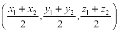 दो बिंदुओं P(x1, y1, z1) और Q(x2, y2, z2) को मिलाने वाले रेखा खंड PQ के मध्य-बिंदु के निर्देशांक हैं: