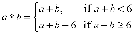 Show that zero is the identity for this operation and each element a ≠ 0 of the set is invertible with 6 – a being the inverse of a.
