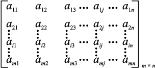 or A = [aij]m × n, 1≤ i ≤ m, 1≤ j ≤ n i, j ∈ N