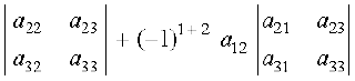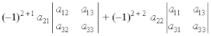 = – a21 (a12 a33 – a32 a13) + a22 (a11 a33 – a31 a13)
