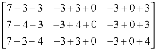 3 corresponding to each of three rows (R1, R2 and R3) and three columns (C1, C2 and C3) giving the same value as shown below.
