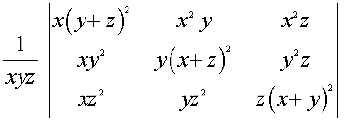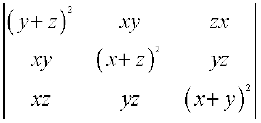 ∆ = (x + y + z)2 (2yz) [(x + z) (x + y) – yz] = (x + y + z)2 (2yz) (x2 + xy + xz)