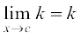 Solution The function is defined at all real numbers and by definition, its value at any real number equals k. Let c be any real number. Then