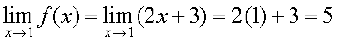 Example 1 Check the continuity of the function f given by f(x) = 2x + 3 at x = 1.