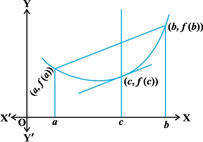 Mean Value Theorem: If f : [a, b] → R is continuous on [a, b] and differentiable on (a, b). Then there exists some c in (a, b) such that