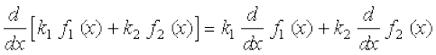 More generally, if f1, f2, f3, ... , fn are functions and k1, k2, ... ,kn are real numbers. Then