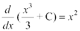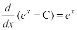 and ex are the anti derivatives (or integrals) of x2 and ex, respectively. Again, we note that for any real number C, treated as constant function, its derivative is zero and hence, we can write (1), (2) and (3) as follows :