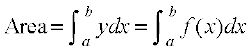 y = f(x), x-axis and the ordinates x = a and x = b. From Fig 8.1, we can think of area under the curve as composed of large number of very thin vertical strips. Consider an arbitrary strip of height y and width dx, then dA (area of the elementary strip)= ydx, where, y = f(x).