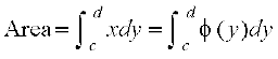 . - The area of the region bounded by the curve x = φ (y), y-axis and the lines y = c, y = d is given by the formula: