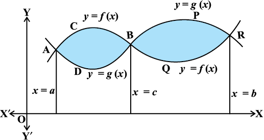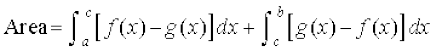 , where, f (x) ≥ g (x) in [a, b] - If f (x) ≥ g (x) in [a, c] and f (x) ≤ g (x) in [c, b], a < c < b, then