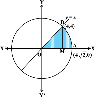 Solving (1) and (2), we find that the line and the circle meet at B(4, 4) in the first quadrant (Fig 8.11). Draw perpendicular BM to the x-axis.
