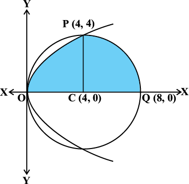 Again, the area of the region OPQAO bounded by the curves x2 = 4y, x = 0, x = 4 and x-axis
