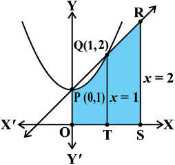 The points of intersection of y = x2 + 1 and y = x + 1 are points P(0, 1) and Q(1, 2). From the Fig 8.24, the required region is the shaded region OPQRSTO whose area