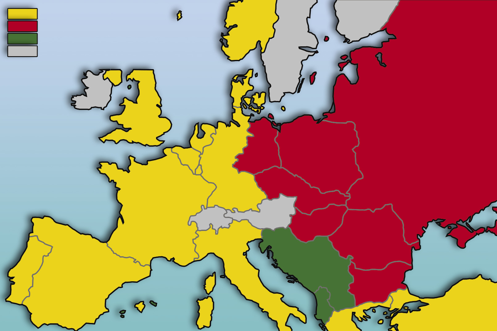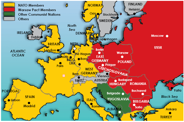 Map showing the way Europe was divided into rival alliances during the Cold War