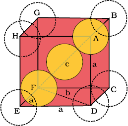 (ii) फलक-केंद्रित एकक कोष्ठिका – एेसी एकक कोष्ठिका में कोनों पर उपस्थित अवयवी कणों के अतिरिक्त एक अवयवी कण प्रत्येक फलक के केंद्र पर भी होता है।