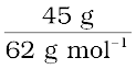 (C2H6O2) का आण्विक द्रव्यमान = (12 × 2) + (1 × 6) + (16 × 2) = 62 g mol–1