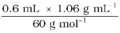 C2H4O2 का मोलर द्रव्यमान = (12 × 2) + (1 × 4) + (16 × 2) = 60 g mol–1