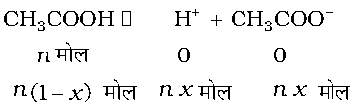 तब [CH3COOH] = n(1–x) = 0.0106 (1 – 0.041),