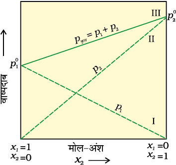 2.16 हेप्टेन एवं अॉक्टेन एक आदर्श विलयन बनाते हैं। 373 K पर दोनों द्रव घटकों के वाष्प दाब क्रमशः 105.2 kPa तथा 46.8 kPa हैं। 26.0 g हेप्टेन एवं 35.0 g अॉक्टेन के मिश्रण का वाष्प दाब क्या होगा?