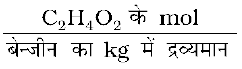 2.5 g एथेनोइक अम्ल (CH3COOH) के 75 g बेन्जीन में विलयन की मोललता की गणना करो।