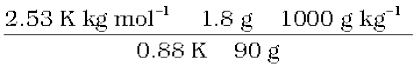 ∆Tf = 1.86 K kg mol–1 × 0.0106 mol kg–1 = 0.0197 K