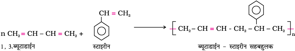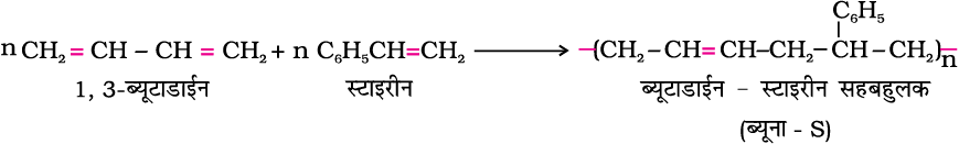 15.4 ब्यूना-N; 1,3-ब्यूटाडाईन और एेक्रिलोनाइट्राइल का सहबहुलक है और ब्यूना-S; 1,3- ब्यूटाडाईन और स्टाइरीन का सहबहुलक है।