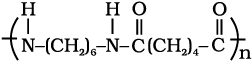 (ii) नाइलॉन 6 - यह कैप्रोलैक्टम को जल के साथ उच्च ताप पर गरम करके प्राप्त किया जाता है। नाइलॉन 6 का उपयोग टायर की डोरियों, वस्त्रों और रस्सियों के निर्माण में किया जाता है।