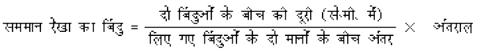varjky] ekufp=k ij okLrfod eku vkSj {ksid eku osQ chp dk varj gksrk gSA mnkgj.k osQ fy,] nks LFkkuksa osQ lerki ekufp=k esa] 28º C vkSj 33º C n'kkZrs gSa vkSj vki 30º C lerki js[kk dks [khapuk pkgrs gSa rks nks fcanqvksa osQ chp nwjh dks ukirs gSaA eku yhft, nwjh 1 ls-eh- ;k 10 fe-eh- gS vkSj 28 vkSj 33 esa 5 dk varj gS] tcfd 30] 28 ls ¯cnq nwj vkSj 33 fcanq ihNs gS] bl izdkj 30 dk lgh ¯cnq gksxkA
