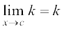 हल यह फलन सभी वास्तविक संख्याओं के लिए परिभाषित है और किसी भी वास्तविक संख्या के लिए इसका मान k है। मान लीजिए कि c एक वास्तविक संख्या है, तो