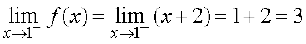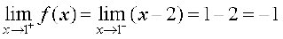 x = 1 पर f के दाएँ पक्ष की सीमा, अर्थात्
