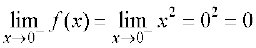 स्पष्टतया x = 0 पर फलन परिभाषित है और f(0) = 0 है। बिंदु x = 0 पर f की बाएँ पक्ष की सीमा