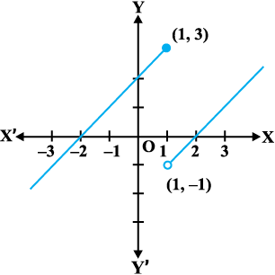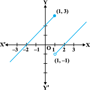 x = 1 पर f संतत नहीं है। इस प्रकार f के असांतत्य का बिंदु केवल मात्र x = 1 है। इस फलन का आलेख आकृति 5.4 में दर्शाया गया है।