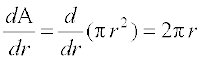 हल त्रिज्या r वाले वृत्त का क्षेत्रफल A = πr2 से दिया जाता है। इसलिए, r के सापेक्ष A के परिवर्तन की दर