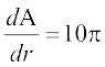 है। अतः वृत्त का क्षेत्रफल 10π cm2/cm की दर से बदल रहा है।