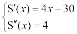 अब S′(x) = 0 से x = 10 प्राप्त होता है और सभी x के लिए S″(x) = 4 > 0 है और इसलिए