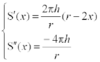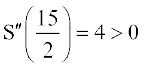प्राप्त होता है। क्योंकि सभी x के लिए S″(x) < 0 है। अतः