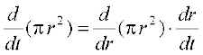 हल त्रिज्या r वाले वृत्त का क्षेत्रफल A = πr2 से दिया जाता है। इसलिए समय t के सापेक्ष क्षेत्रफल A के परिवर्तन की दर है