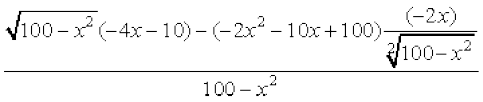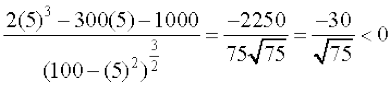 अब A′(x) = 0 से 2x2 + 10x – 100 = 0, जिससे x = 5 और x = –10 प्राप्त होता है।