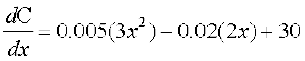 C(x) = 0.005 x3 – 0.02 x2 + 30x + 5000