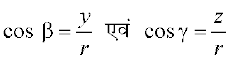 }kjk x, y ,oa z-v{k dh /ukRed fn'kkvksa osQ lkFk cuk, x, Øe'k% dks.k α, β, ,oa γ fn'kk dks.k dgykrs gSaA bu dks.kksa osQ dkslkbu eku vFkkZr~ cosα, cosβ ,oa cosγ lfn'k